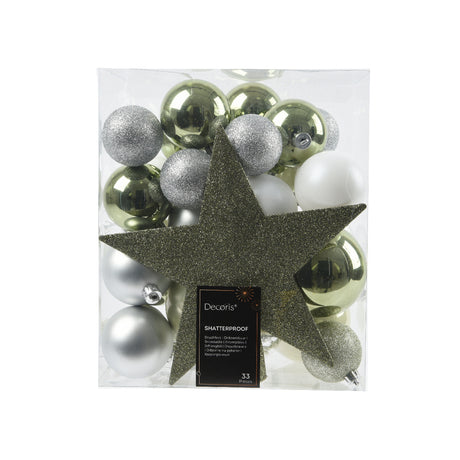 R 106.00Unit price /UnavailableBauble Set With Star Tree Topper Set Of 33 8Cm, Green & Silver
