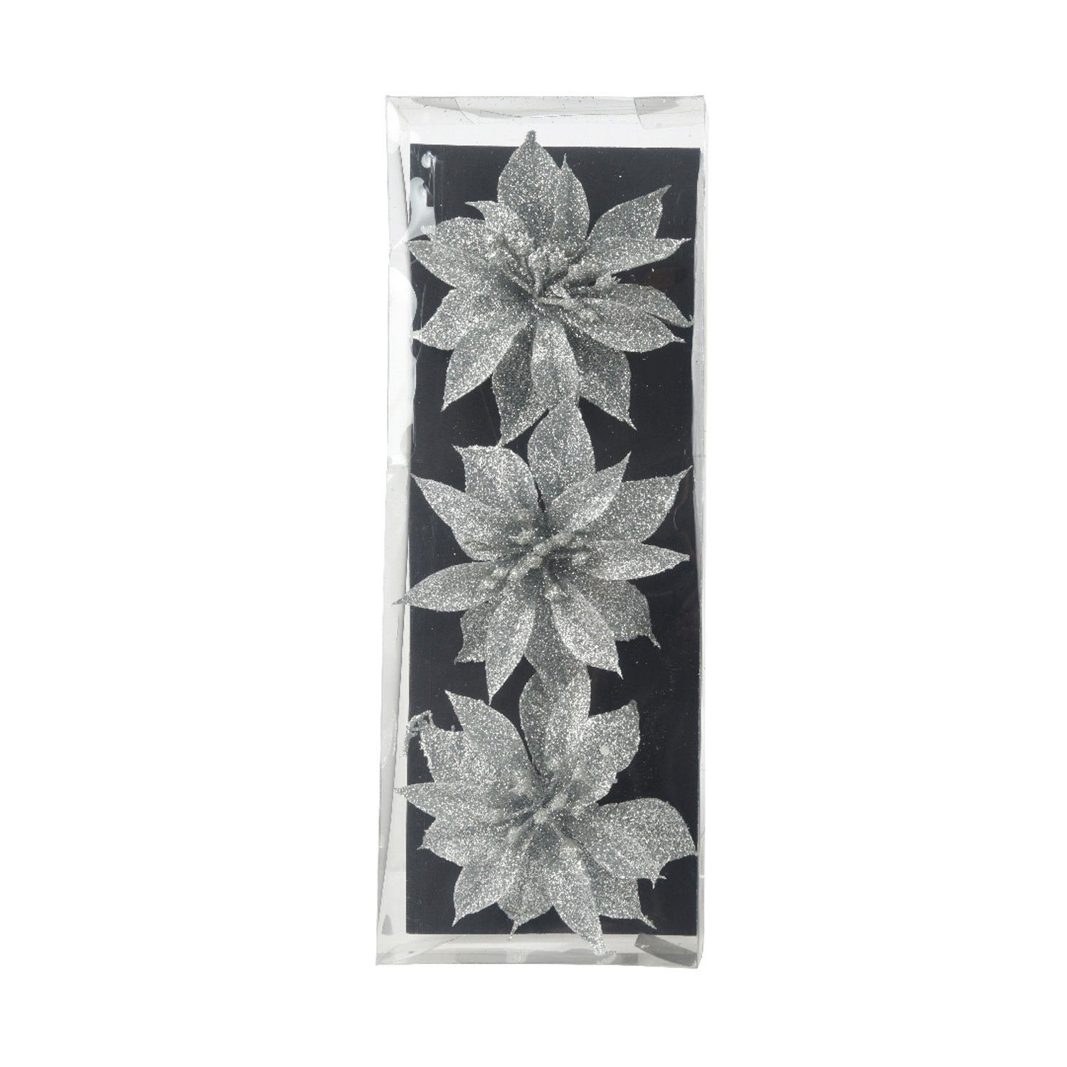 (740842)Poinsettia On Clip Set Of 3 - Silver 9Cm