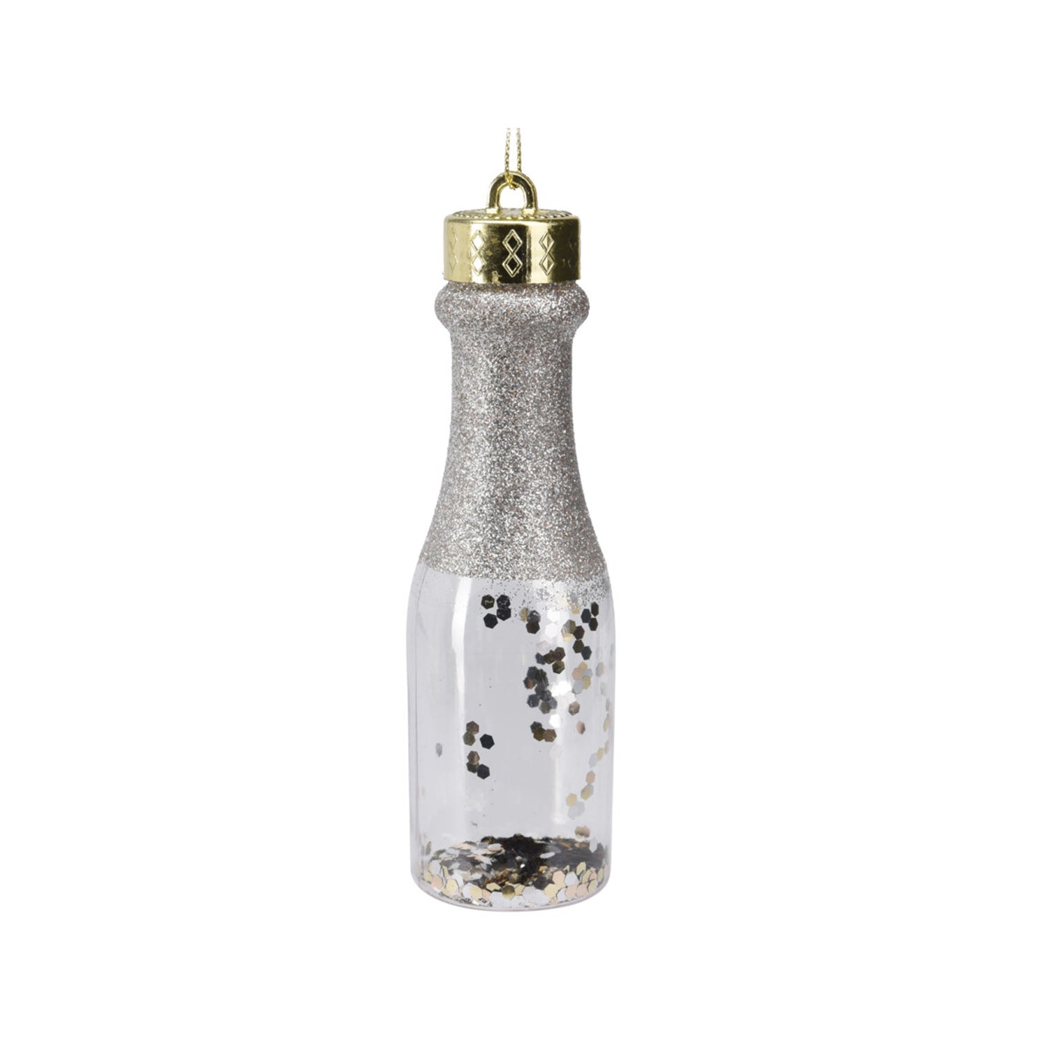 (Caa813450)Bottle, Pet, 4X14Cm, Transparent Bottle With Glitter Inside, Silver