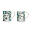These 'sumptuous' Mug Set of two are crafted from Fine Bone china and form part of the enticing Kaleidoscope range. They capture the intriguing expressions of two different women with classic sketchbook features. Resting against artistic floral backdrops they’re highlighted with metallic platinum embellishments. Use them to accentuate elegance at a dining table. Handwash. Capacity: 400ml