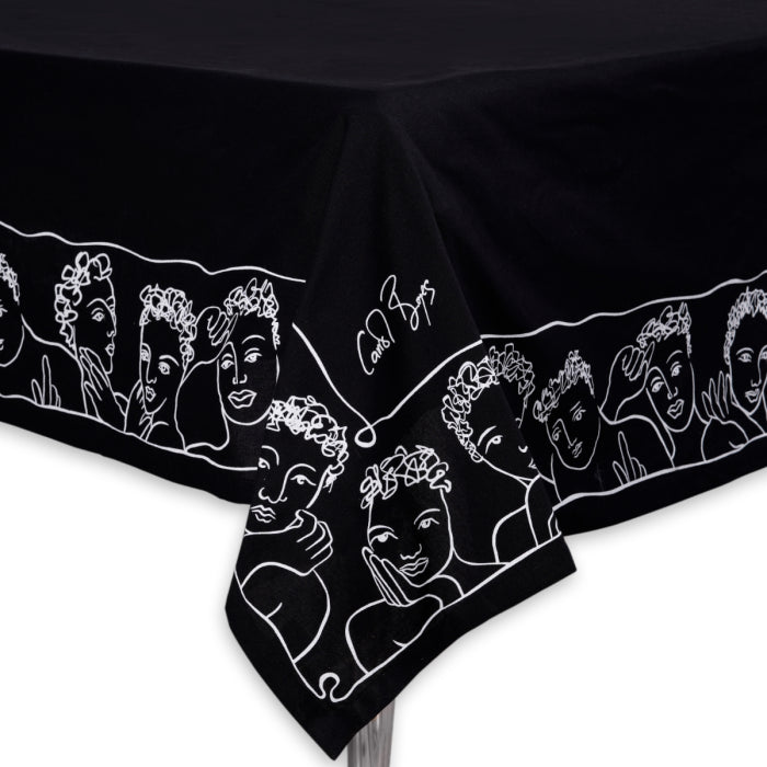 Encourage lively conversations at the table with the 160cm x 300cm black 'well framed' Tablecloth. Made from 100% woven cotton, it features Carrol's unmistakable designs, adding a touch of designer charm. Suitable for 8 to 10-seater tables.