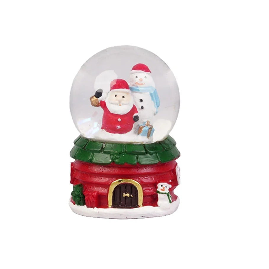 Capture the spirit of winter with this delightful snow globe showcasing Santa alongside a cheerful snowman. Measuring 4.5x4.5x6cm, this compact collectible delivers instant holiday atmosphere wherever you place it. Shake it to watch snow dance around these iconic seasonal figures, creating a mesmerizing display. Ideal for decorating mantels, desks, or gift tables during the festive season. A timeless piece that brings warmth and wonders to any space, making it a treasured addition to your holiday collection.