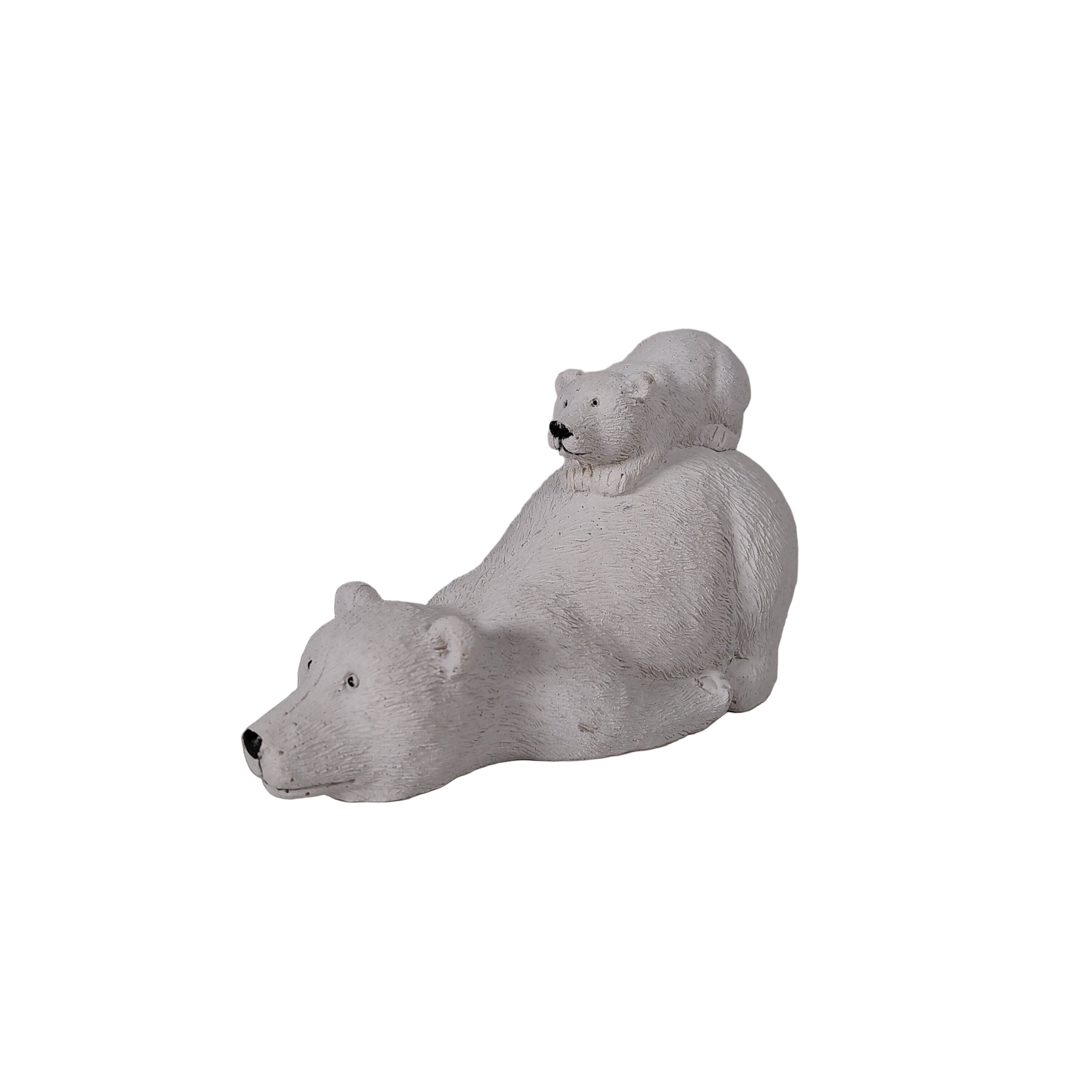 Experience the gentle connection between a polar bear and her cub with this charming figurine. Measuring 15.5 x 6 x 10.5 cm, it captures a peaceful moment of the mother lying on her belly with her cub resting comfortably on her back. This delicate piece brings warmth and a sense of calm to any room, making it a perfect gift or a heartfelt addition to your collection. Celebrate nature’s tenderness with this beautifully detailed sculpture.