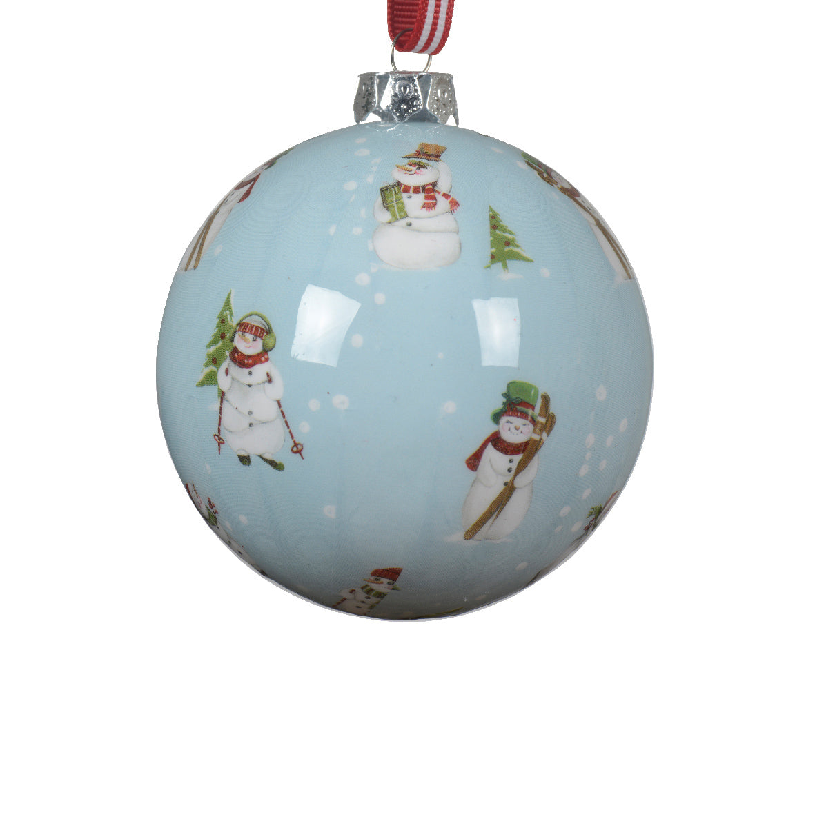 (029389)Polyfoam Bauble Blue With Snowmen 8X9.3Cm