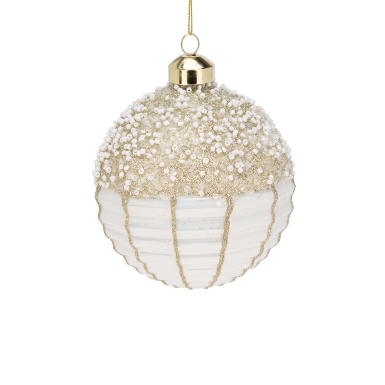 Xmas Ball, Glass 10x10x10cm, - White Bottom is backordered and will ship as soon as it is back in stock.