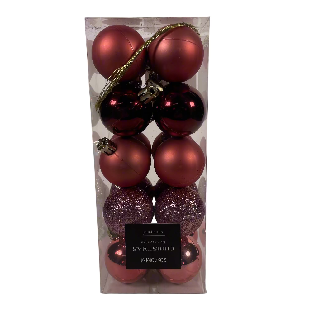 Add a delicate touch of charm to your holiday decor with this set of 20 pink Christmas balls. Each 4cm bauble offers a soft, elegant hue that brightens any tree or wreath. Their compact size makes them perfect for filling in gaps or creating cohesive, stylish arrangements. Bring festive warmth and subtle sophistication to your home this season with these beautifully crafted ornaments.