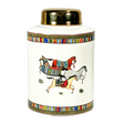 (Lya-320)Ginger Jar White With Horse Design 13X21Cm