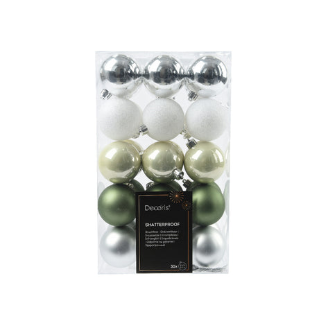 R 305.30Unit price /UnavailableBaubles Set Of 30 6Cm, Silver, White, Green & Silver