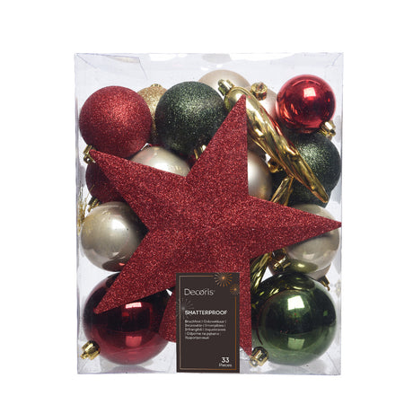 R 205.20Unit price /UnavailableBauble Set With Star Tree Topper Set Of 33 8Cm, Red, Green & Gold