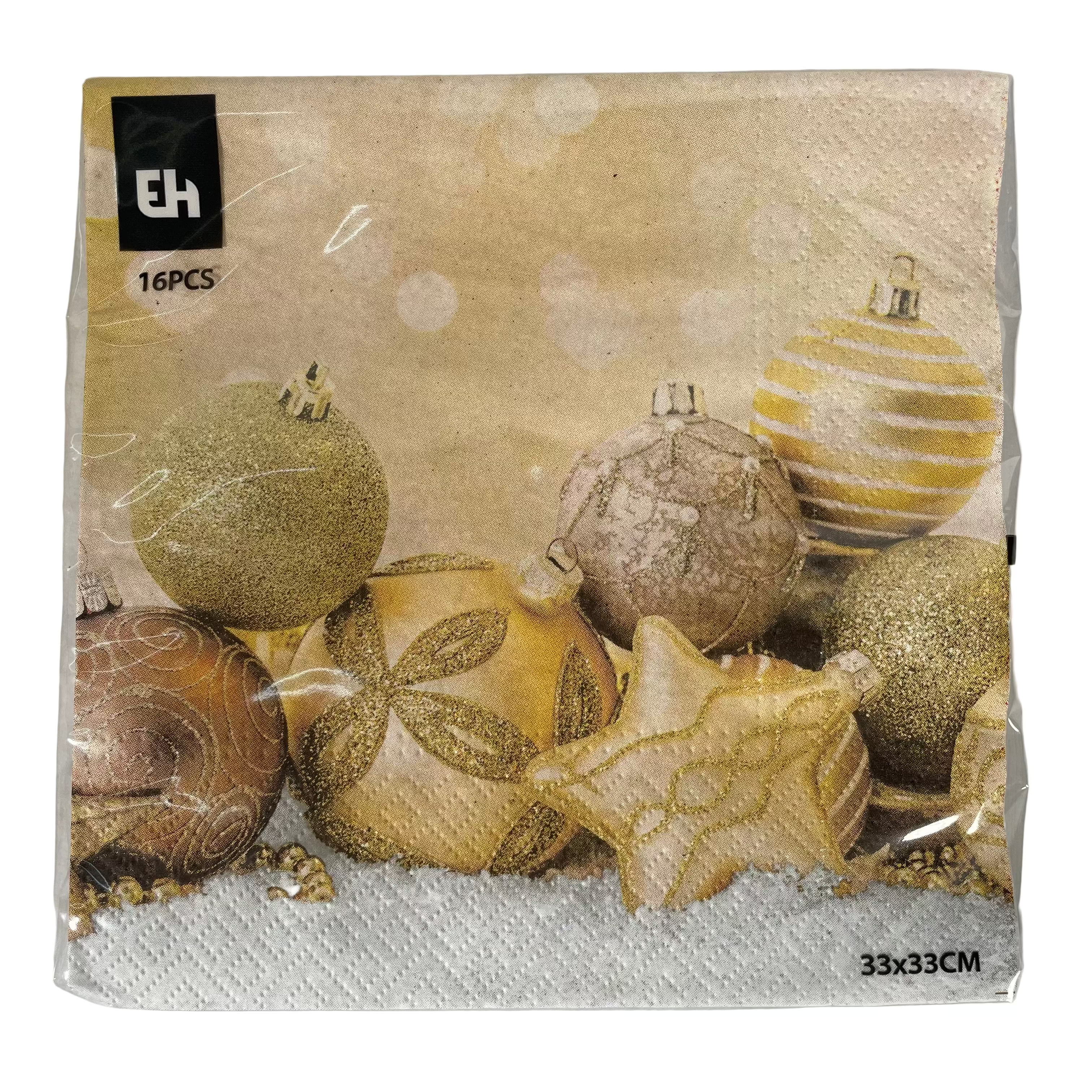 (602500360)NAPKIN 33X33CM - GOLD BAUBLES
